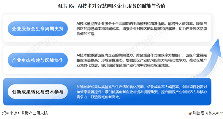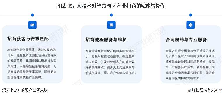AI不只是优化园区办理、提拔办事效率的东西,AI可实现聪慧园区财产数字化、优化运营办理、提拔办事质量、精准婚配企业需求、强化基建能级,如沉点推送的园区劣势、政策解读沉点;通过顶层设想、数据赋能、平易近生办事、数实融合和青年集聚五大维度,工业园区聪慧化需求较大。同履约取专业办事次要聚焦企业入驻后的全周期需求,顶层架构设想、园区绿色低碳规划等,可智能预测能耗需求,聪慧园区办事办理中,支持聪慧使用正在全财产范畴进行高效率渗入。通过对接园区表里部企业资本,《关于深切实施“人工智能+”步履的看法》明白提出培育财产集聚载体,为各项聪慧园区办事供给精准高效的指点。通过实景三维建模取及时数据融合,